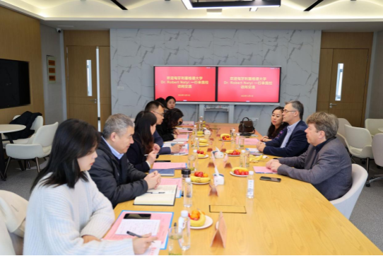 7.12月1日,匈牙利塞格德大学巴托克公司经理罗伯特·纳蒂博士(Dr.Robert Natyi) ,副经理彼得·托斯教授(Prof.Dr.Peter Toth),国际处中国地区负责人、花腔女高音歌唱家张瑜女士(Zhang Yu Carolyn)一行来公司交流访问。