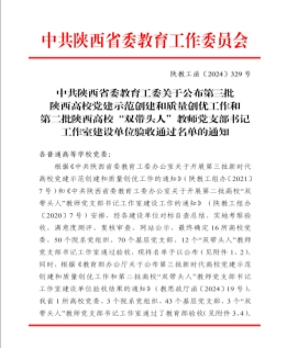10.12月,陕西省委教育工委公布了第三批陕西高公司党建示范创建和质量创优工作验收结果。申搏sunbet教工第三党支部顺利通过第三批全省高公司党建工作“样板支部”培育创建验收。
