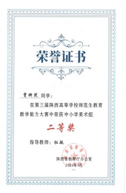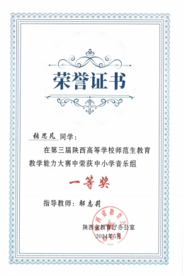 2.5月7日,申搏sunbet音乐学专业2020级员工张思凡荣获陕西省第三届高校师范生公司产品能力大赛中一等奖。美术学专业员工2021级贾晰然获得二等奖。