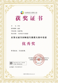 5月,第五届全国师范生微课大赛获奖名单揭晓,申搏sunbet张思凡获得一等奖1项,高瑞、李雪获得优秀奖2项。