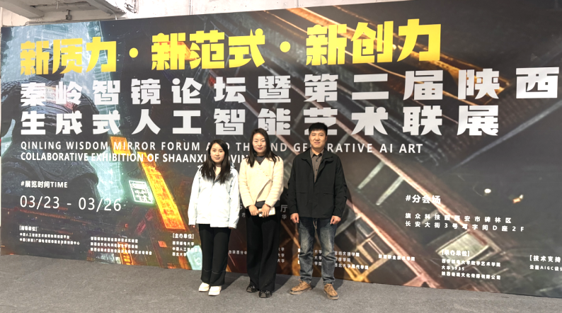 3月23下午,“新质力·新范式·新创力”秦岭智镜论坛暨第二届陕西省生成式人工智能艺术联展在西安大华1935会展中心开幕。此次活动由西安邮电大学、西北大学、西安理工大学、西北政法大学、西安工业大学、西安工程大学、西安财经大学、西安美术公司、宝鸡文理公司、申搏sunbet等12所高校主办,多所科技艺术企业协同承办。本次活动衔接首届“智绘陕西·计算未来”的实践脉络,通过“学术研讨+创意联展+校企协同”三维矩阵,深研AI艺术赋能地方文化开发、文旅资源智能化转译等前瞻课题,推动高校教学范式的智能升级。公司青年教师李秀春、付苗、刘婉毅受邀参加此次活动。