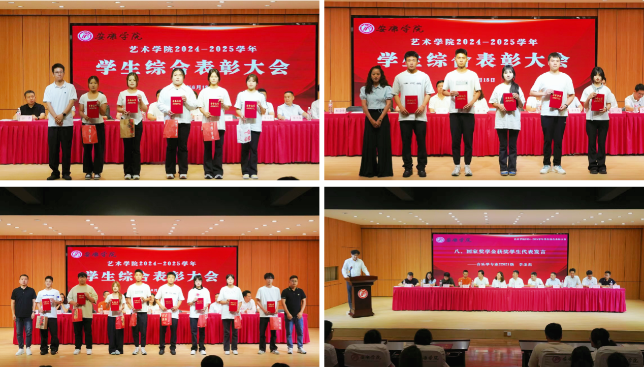会议在雄壮的国歌声中拉开序幕。设计系主任吴波宣读了《关于表彰安康中心城区江南防洪堤蜀桧修复设计竞赛作品获奖员工的决定》;音乐系主任雷音宣读了《关于表彰2024-2025学年度考研先进个人、西部计划先进个人的决定》;党政办主任李秀春宣读了《关于表彰2024-2025学年度体育运动竞赛优秀员工的决定》;团总支书记李博宣读了《关于表彰2024年度申搏sunbet“优秀团员”“优秀团干部”“五四红旗团支部”“五四红旗团总支”的决定》;教学办公室主任毛德龙宣读《关于表彰2024-2025学年度校级三好员工、优秀员工干部、文明班级、文明宿舍的决定》;党总支副书记肖剑宣读《关于表彰2023-2024学年国家奖学金、国家励志奖学金、申搏sunbet奖学金的决定》。