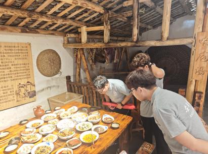 团队抵达中坝作坊小镇后,在工作人员的带领下,先后参观了榨油坊、草鞋坊、陶艺坊、染坊等传统手工作坊。这些作坊保留着古老的生产器具和传统工艺流程,队员们近距离观察了匠人如何运用祖辈流传的技艺进行生产,从原料的选取到每一道工序的精细操作,让大家感受到了传统手工艺的独特魅力,使队员们对中坝作坊小镇作为“活态非遗博物馆”的文化价值有了初步认识。