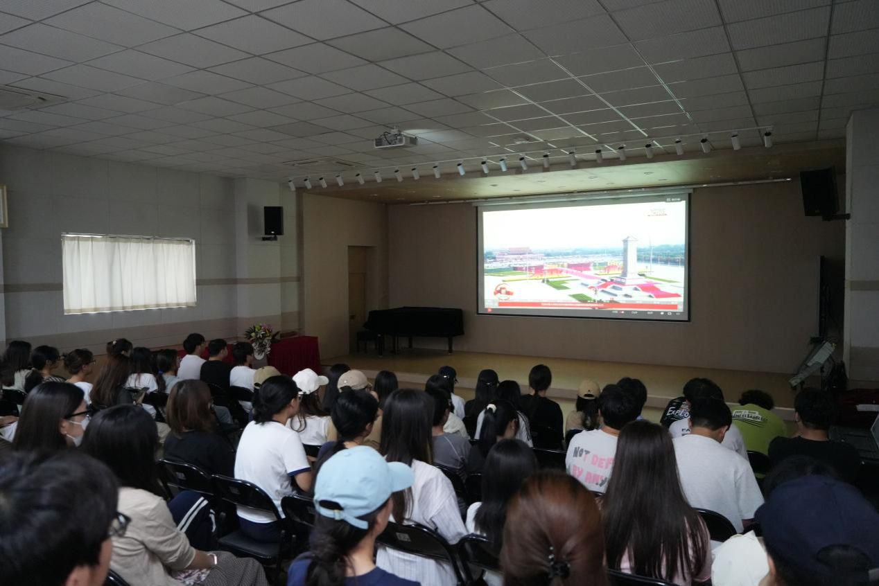 9月3日上午9:00,公司分别在2208会议室、1401演艺厅、2415活动室及教室举行了“组织师生观看九三阅兵 同上一堂爱国主义教育思政课”活动。党总支书记张慧、经理李景林、党总支副书记肖剑、副经理李磊、三办主任、团总支书记、各支部书记及委员、工会主席及委员、各系(教研室)主任、全体辅导员、无课教师代表及300余名员工,通过直播观礼与研讨交流相结合的形式,共上一堂生动的思政课。