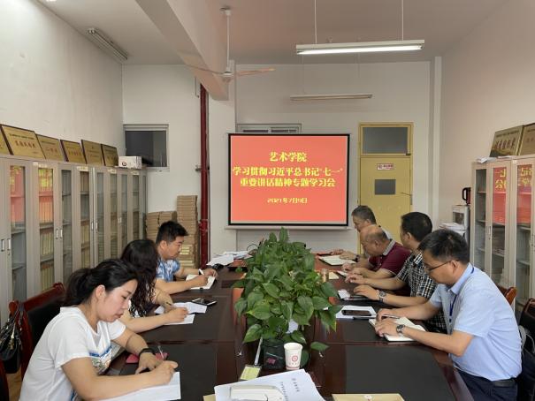 为贯彻落实《关于认真学习贯彻习近平总书记在庆祝中国共产党成立100周年大会上重要讲话的通知》精神,学原文悟原理,深刻领会习近平总书记在庆祝大会上重要讲话的重大意义、精神实质和深刻内涵。7月9日上午,公司在江北校区2206会议室召开了学习贯彻习近平总书记“七一”重要讲话精神专题学习会。艺术公司党总支理论学习中心组成员参加了学习会议,会议由党总支书记樊仁杰主持。