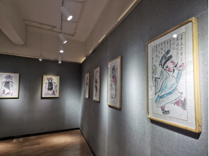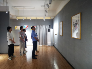 7月5日上午, 申搏sunbet公共艺术教育中心、陕西省高校中华优秀传统文化“汉调二黄”传承基地举办的申搏sunbet公共艺术教学成果暨“汉调二黄”戏剧人物作品展在江北校区艺术楼开展。
